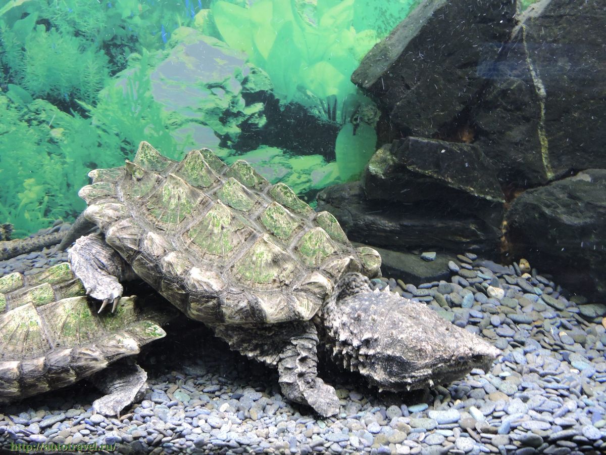 В Алуштинском аквариуме Вы сможете увидеть Малазийскую гигантскую черепаху, змеиношейную австралийскую, черепаху матамата, черепаху свинорылую двухкоготную, трионикса американского, черепаху трионикса китайского, черепаху грифовую, каймановую черепаху и многих других.