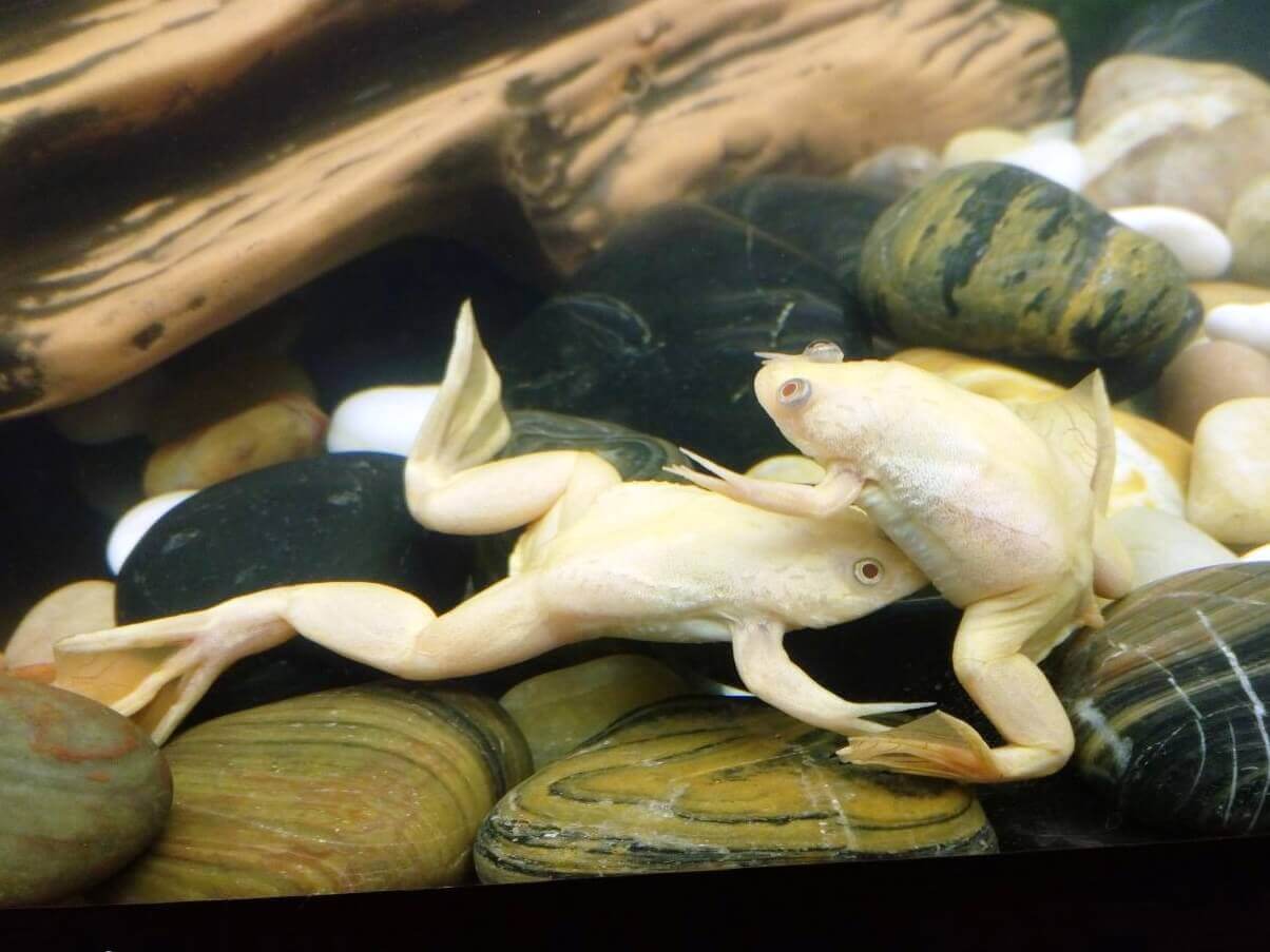 В Алуштинском аквариуме очень много рыб, но шпорцевым лягушкам детвора уделяет больше внимания.